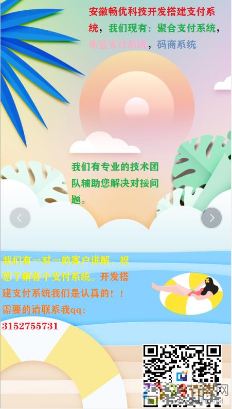 五: 安徽畅优科技有限公司是一家以聚合支付系统、免签支付系统,码商系统开发及搭建等技术为核心的科技公司来源www.99xinxi.net。主要产品有:聚合支付系统、 免签支付系统,码商系统9+9+信+息+网。聚合支付系统可以将市面上主流的一个以上的银行、非银机构或清算组织的支付渠道整合到一个付款渠道接口,发放给 下级商户用户使用;免签支付系统专为个人、企业收款而生的支付工具,为支付宝、微信支付的个人账户、企业账号,提供即时到账收款API接口 ;码商系统是供码商在供码平台代收款获得收款提成,接口对接方免去死码风险,低费率收款,码商系统赚取中间费率差价9.9.信.息.网。